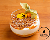 Flan à la mauricienne parfumé à la fleur d'oranger et vanille, mangue mûre, éclat de pistache, pétale de rose et pistil de safran comestible